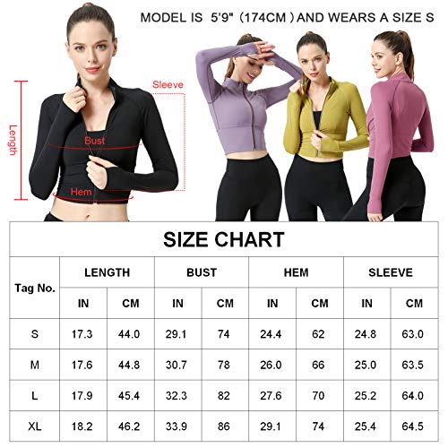 Women’s Cropped Workout Jacket Front Zip Stretchy Fitted Long Sleeve Crop Top Activewear