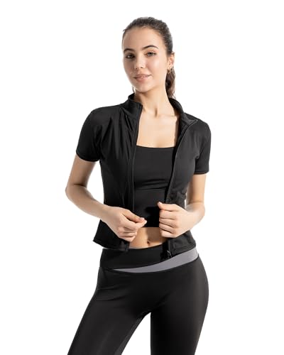 Women’s Short Sleeve Slim Fit Athletic Jacket Full Zip Workout Tops Solid Color Fitness Clothing